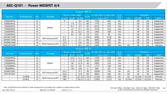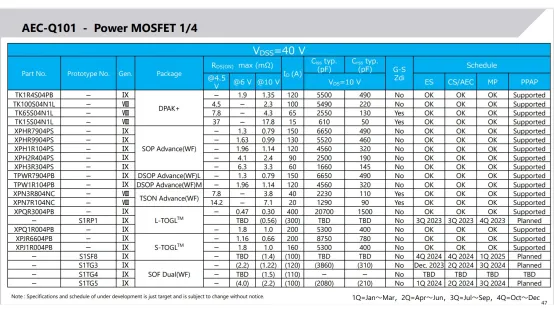 东芝Mosfet在车载应用领域主要推广型号如下: